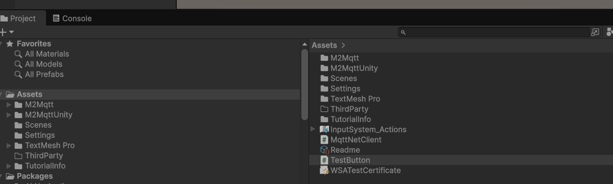 进入 https://github.com/gpvigano/M2MqttUnity 下载源码,把仓库Assets里的内容粘贴到项目Assets目录下: