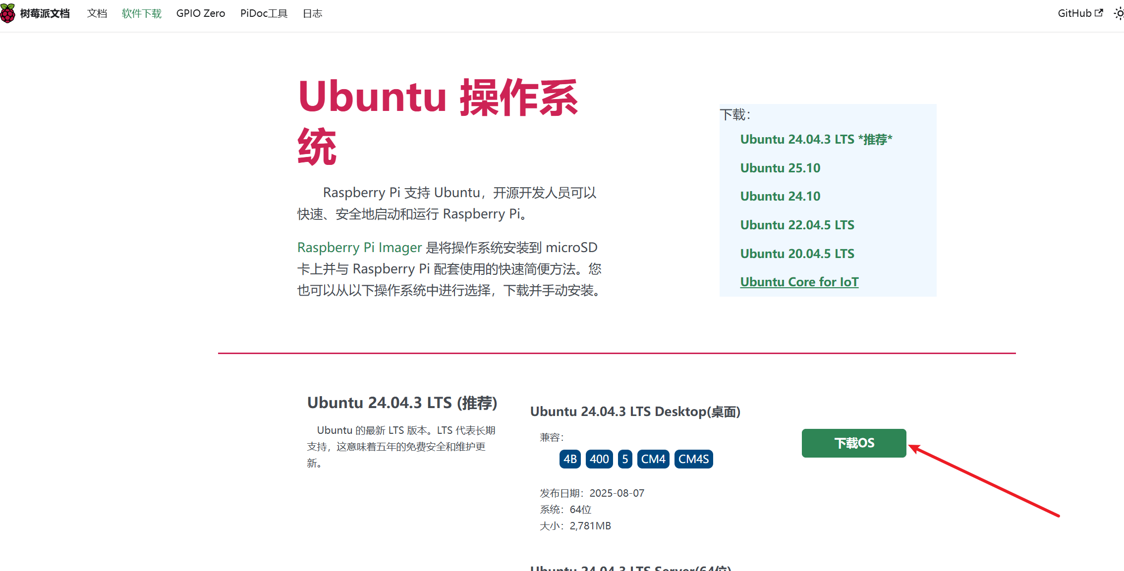 树莓派5不再支持Ubuntu22.04 所以这里安装Ubuntu24.04 :