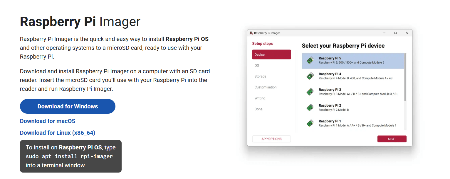 下载树莓派的烧录软件: https://www.raspberrypi.com/software/