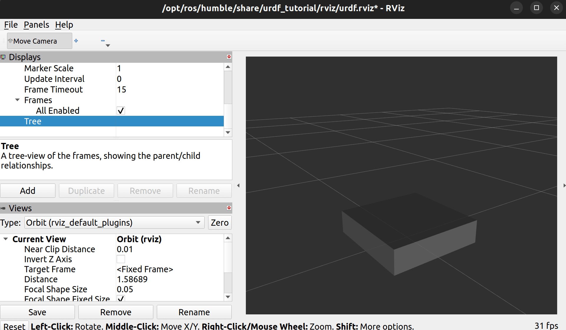 sudo apt install ros-$ROS_DISTRO-urdf-tutorial这个包是便于我们预览模型的,不用手动编写启动文件,使用下面的命令,预览模型: