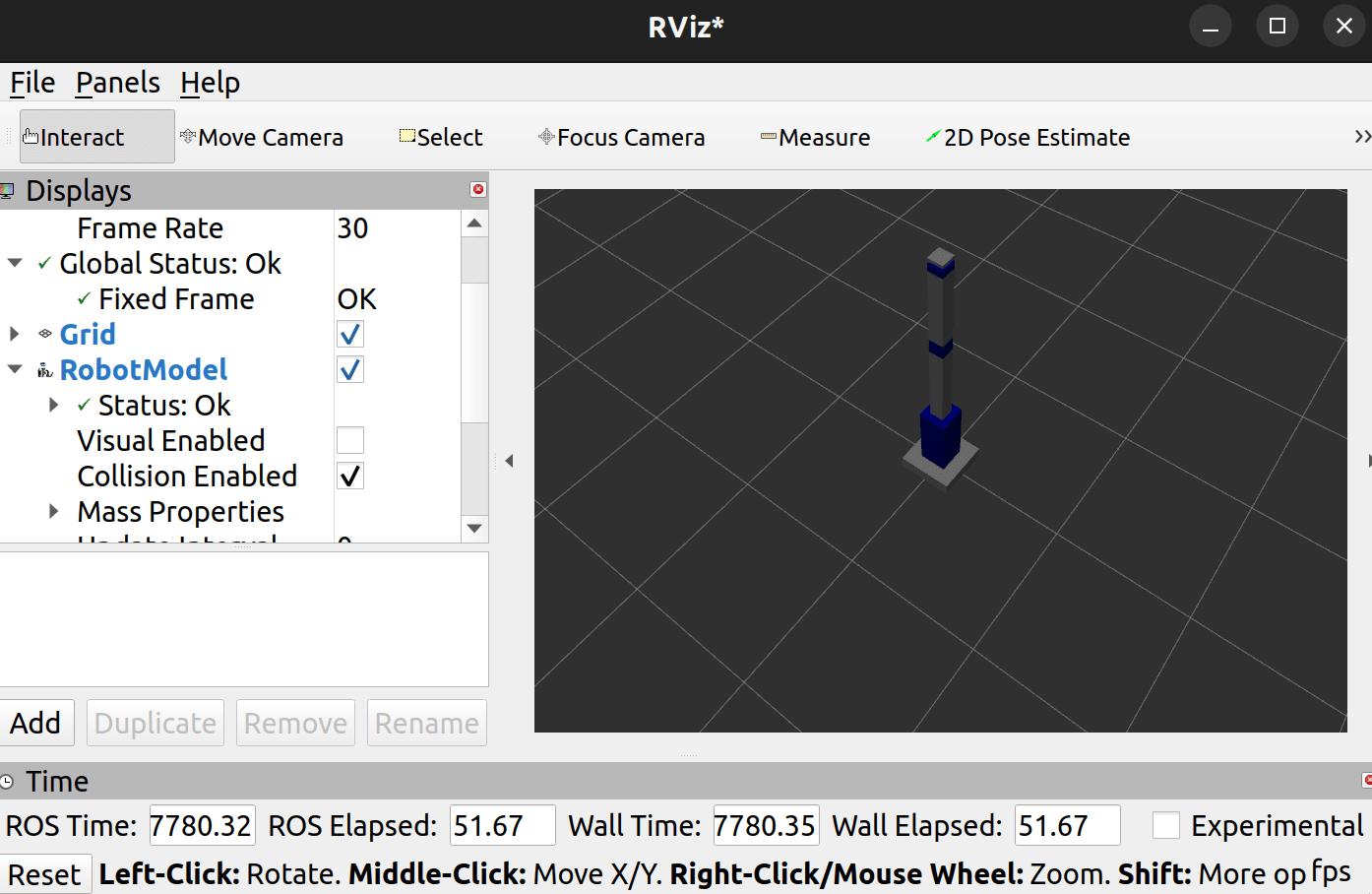 </link>添加碰撞体积,只需要在link组件里加上collosion标签,collosion标签和视觉标签里的内容一致,这样显示的就是真正的碰撞体积。(如果零件复杂,也可以简化碰撞体积的结构,可以让计算更简单)